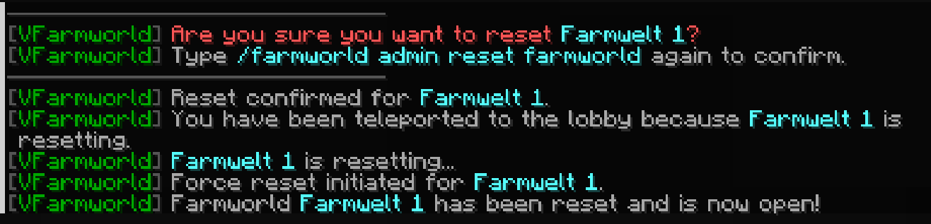 /farmworld admin reset | Sofortigen Reset erzwingen (2-Schritt-Bestätigung) | vfarmworld.admin |