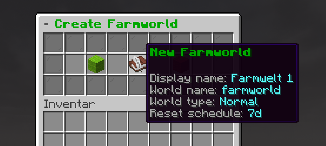 - 🌍 Unbegrenzte Farmwelten – Erstelle beliebig viele Welten für Overworld, Nether und End, jede mit eigenen Einstellungen