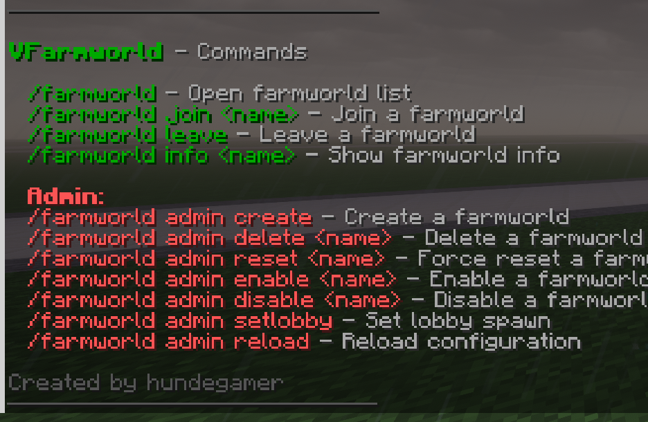 /farmworld admin reload | Konfiguration neu laden | vfarmworld.admin |