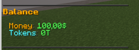 /money, /tokens, ... | Kontostand der gebundenen Währung + Transaktionsverlauf | vmultieconomy.balance |