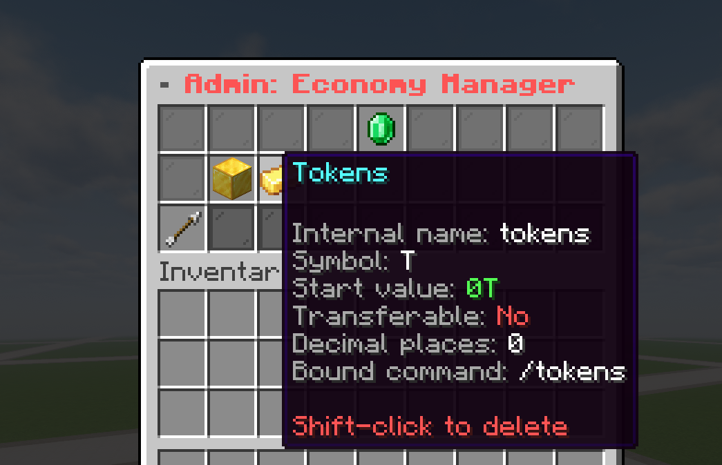 | Erstellungs-GUI | Name, Transferable-Toggle, Startguthaben, Dezimalstellen einstellen |