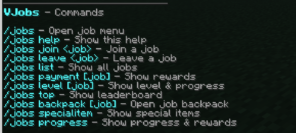 Hauptcommand: /jobs · Aliase: /job, /vjobs