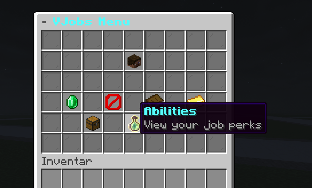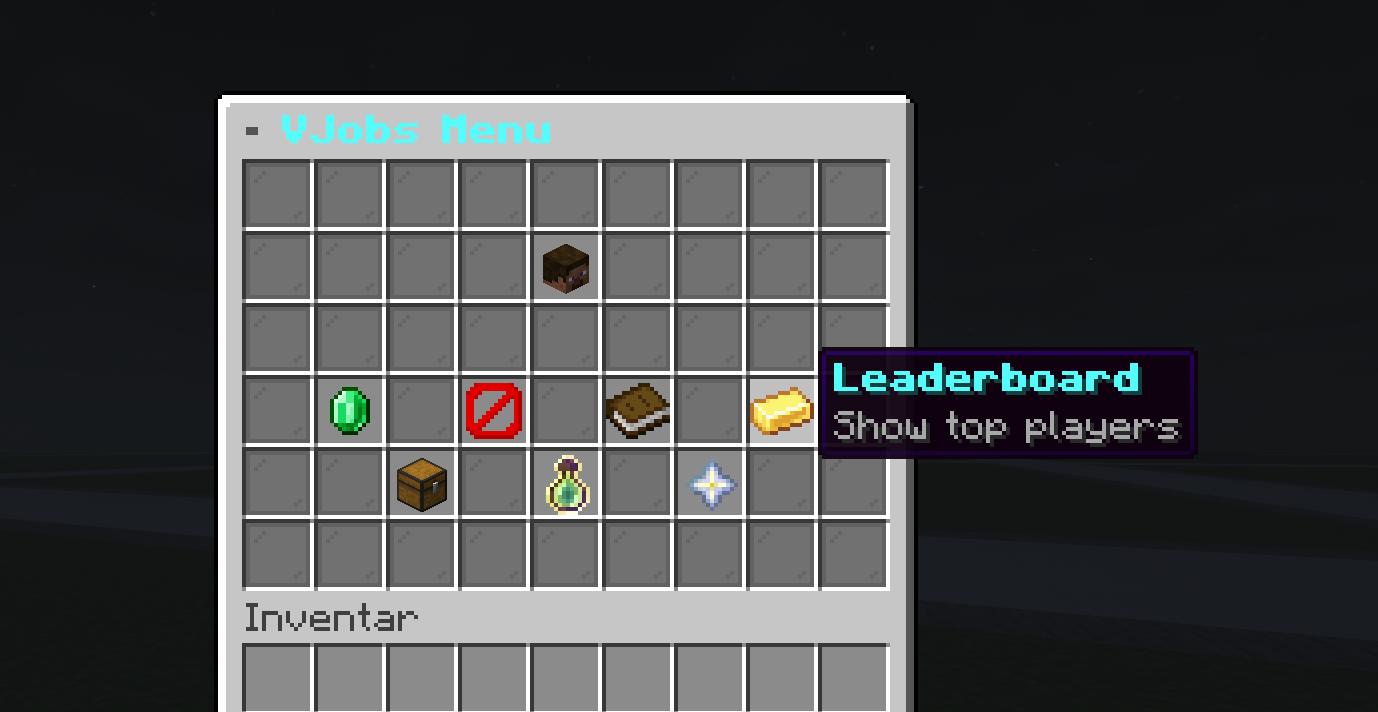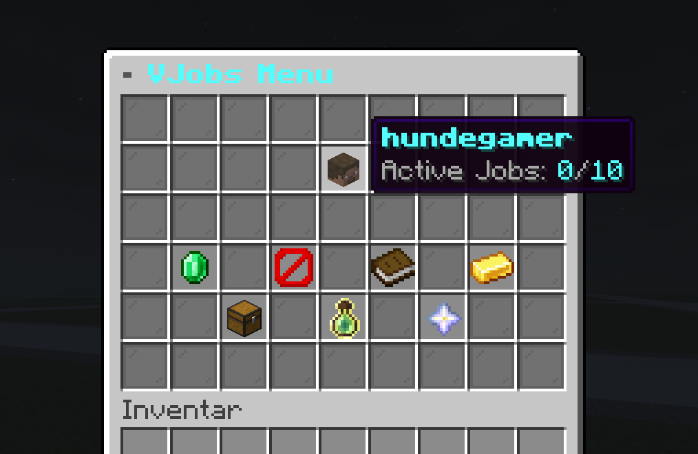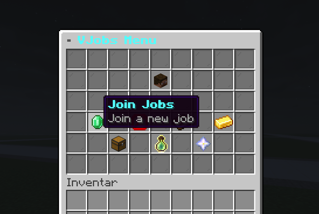 VJobs bringt ein vollwertiges Berufe-System auf deinen Server. 10 Jobs, Level 1–100, Spezial-Items, passive Fähigkeiten, ein Backpack-System pro Job und Meilenstein-Belohnungen – alles über ein umfangreiches GUI-System.