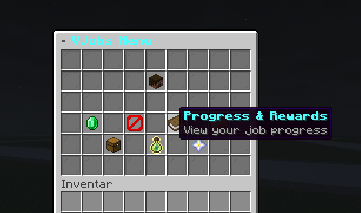 | Fortschrittsauswahl | Alle aktiven Jobs mit Level, XP und Tageslimit-Rest |