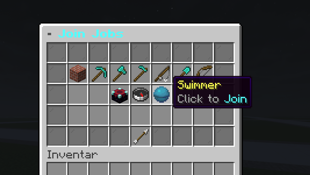 - ⛏️ 10 Jobs – Baumeister, Bergarbeiter, Holzfäller, Farmer, Gräber, Angler, Jäger, Verzauberer, Erkunder und Schwimmer – jeder mit eigenen Belohnungen