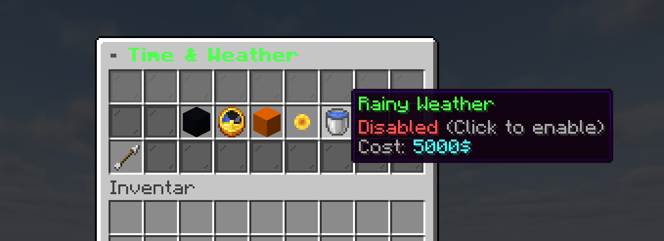 | Zeit & Wetter | Tag/Nacht/Sonnenuntergang, Sonne/Regen – mit Kauf-Status |