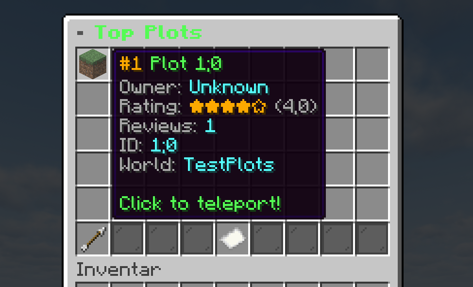 - 🏆 Top Plots – Bestbewertete Plots als Rangliste mit Teleport per Klick