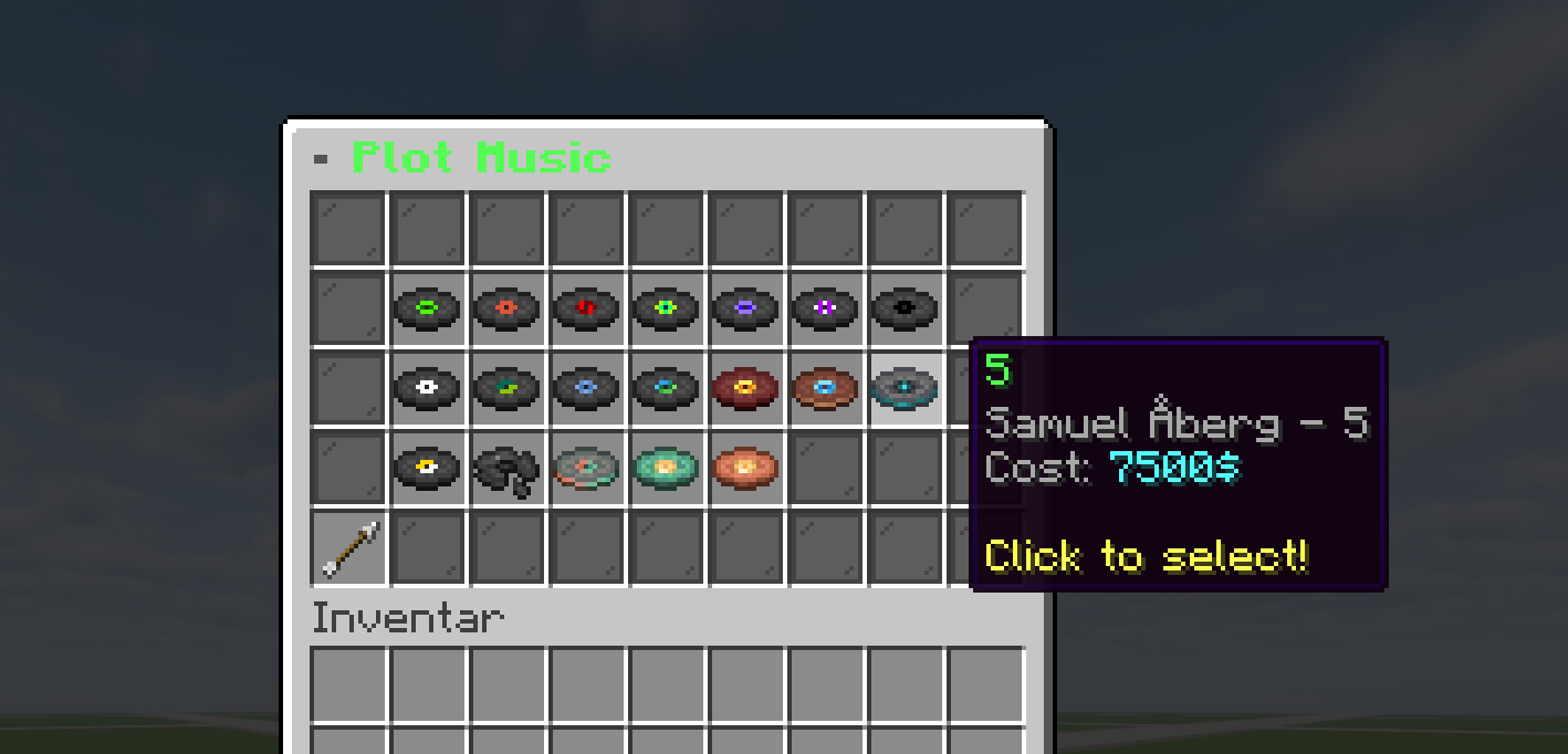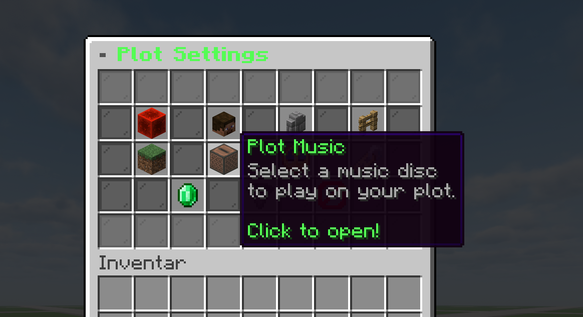 - 🎵 Musik – 19 Music Discs pro Plot über PlotSquared API – einmalig kaufen, frei umschalten
